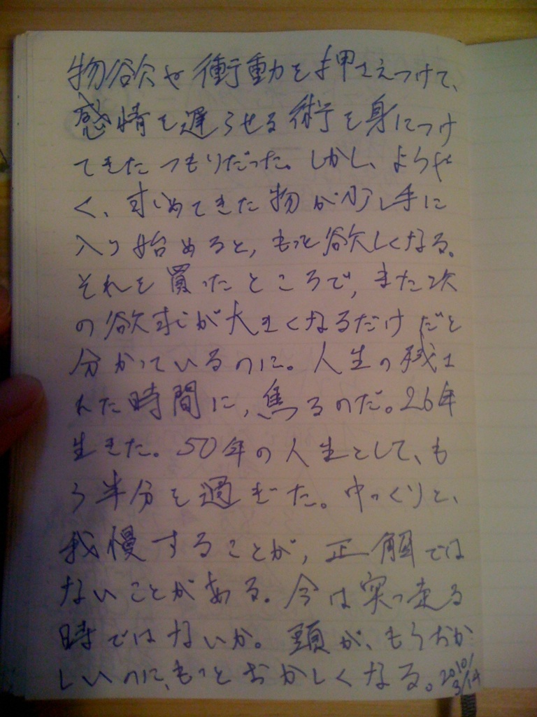 Good script. Well-worth reading again. Germany could be Germany because no one else wants to be like them. Resembles ELISAA photo from the suicide bomb in Moscow. Doesn't she resemble ELISA? By the way, it's the end of March. And it snowed yesterday! Yeah the Earth is really warming up. ソフトバンク、電波改善+@宣言http://japanese.engadget.com/2010/03/28/softbank-femtcell/より 今後一年、2010年度中に基地局を現在よりさらに倍増。 自宅用にフェムトセル(ミニ3G基地局) を無料提供。専用ADSLサービスも無料提供。 さらに店舗・企業向けにもフェムトセルを無料提供。回線も同上。 店舗・企業向けに、iPhone や WiFi 携帯で使える WiFiホットスポットを無償提供。 こいつはアツい!! ニフティの1年契約が終わったら、ソフトバンクとしての恩恵を受けようじゃないか。 来年3月でIphoneの2年縛りも終わる。それまでに3GSの後継が出ているかもしれないし、 グーグルフォンに変えてもいい。 どちらにしても、ネットが無料で使えて、wifiもいけるというのは大きい。 楽しい世の中だ。 部屋スピーカーセピア・ママントヨタもやるねぇ[mixi] 現金の価値と大きな買い物今年に入ってからの大きな買い物たち↓ ・40型REGZA(録画機能つき):2月 102,000円(エコポイント引いたら79,000円) ・エイサーAS5740 (Core i5, Windows 7 64bit):昨日注文 72,690円 ・ブラザーのモノクロ複合機 (MFC-8380DN 30PPM):昨日注文 39,800円 ・ヤマハのサラウンドスピーカー:昨日注文 12,640円 ・懸垂用のトレーニングキット:昨日注文 11,123円 全部で238,253円。どれもずっと欲しかったものばかり。 買うお金を用意してから実際買うまでに半年くらい待った。 休み明けから徐々に届く予定。楽しみだ☆ 5年10年前だったら、ノートパソコンだけで24万円くらいしただろう。 国のあり方としてはまずいのだろうが...デフレ万歳!! 昔は安くて悪いものが多かった。 最近は安くてもいいものがたくさんある☆ 10年は使おう。10年後は、36歳か... 買っちゃったよ。¥148,706-意を決して、今日注文した: 1. AS5740 (Core i5, Windows 7 64bit) \72,690- 2. MFC-8380DN 30PPM ブラザーの複合機(コピー、プリンタ、スキャナ、ADF、自動両面) ¥39,800- 3. チャーリー社の"DJスピーカー ベア Sサイズ ショコラブラウン" ¥1,890- 4. NS-F210-MB ヤマハのサラウンドスピーカー♪ ¥12,640- 5. 懸垂用のトレーニング機材 "トータルフィットネス(TotalFitness) 懸垂マシン2 STM047" ¥11,123- ほか、HDMIケーブル5m(¥1,770-)、外付けHDD(¥8,793-) 全部しめて¥148,706- 俺の手取り月収172,000円に匹敵する額だ。 しかし、ローンではない。 現金で、余ったお金で、しっかりと吟味(半年近く考えてたな)したうえでの判断。 来週届くのが楽しみだ。 それぞれについて、また一つ一つ、感想を書いていきたい。 They're all well within my means. マイクロクレジット≠新銀行東京??http://www.daiwa.jp/seminar/0910micro/index.html のマイクロクレジットの話を聞いていると、 面白いと思う反面、 新銀行東京を思い出してしまう。 これはあくまで、銀行が貸し渋りを行っている間だけの ビジネスモデルではないのか? 新銀行東京のスタートは、 銀行に成り代わって本来借りられるべき人々に貸付を 行うことだった。発足前にその事業を銀行が行い始めたので、 存在意義がないままスタートして赤字の連続だ。 貸し倒れも多い(らしい。具体的な数字は知らない)。 マイクロクレジットは、その貸し倒れリスクを 個人に負わせている点でより恐ろしい。 流行り始めたと言うか、頻繁に耳には入りだしたのが リーマンショック前後だった(と思う)ことをかんがえても、 あくまでも不景気の間の過渡的なビジネスモデルではないか。 今までは儲かったかもしれない。 リターンは年5-6%で、完済率も97%だった。 しかし、貸付先がなくなれば、銀行に顧客を奪われて しまえば、わけの分からない連中にも貸すようになる。 ましてこれから景気は回復に向かうのに、 こんなところに金を突っ込んでいる場合じゃない。 素人感覚に過ぎないが、 マイクロクレジットに投資するくらいなら 原子力関連銘柄に分散投資するほうが 賢そうな気がする。 さて、ギリシャがいったいどうなるのか。 4-6月の動きを見て、投資するかどうか決めよう。 10100-10800円まであっという間に変動し、 今回の上昇相場も逃してしまった。 もしかしたらもう、投資自体やらないかもしれない。 とにかく、チャンスを待って、つかめたらつかもうじゃないか。 The more we buy, the more we get stuckIf we want to stay light, we should not buy too many stuff to fill up the room. Yet, owning good stuff is convenient and it makes you feel kind of secure (well, that's actually just an imagination). The sad thing is that there is no guarantee that I will be living in the same house for long. My income has never been a stable one. My first job was a straight-commission one and was never really successful in it. After that, I've been fired from 4 companies, using up nearly all unemployment benefits, leaving just two more days (will be back to 90 again if I could survive my current working place till the end of August). So, I'd be buying the stuff right now, if I knew I would be living here next year and on. But what if I lose everything