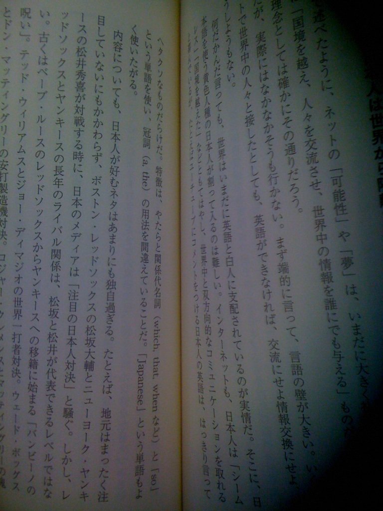 Cry of the working-poorMonthly income: 17 Monthly expense: 9-10 Monthly savings: 0-5 Monthly personal development: 0-2 My income balance is flawed, according to the 1:1:1 theory. The house hold rent of 5 is the major cause. An income of 15 would be enough in the past. Now we need 27-30. Will it happen? Is it worth the effort? At least we'd start teaching online. But that'll only make 2 per month and kill all the time required to make the remaining 15. Making a choice is a risk. Yet not making one is far more dangerous still. Random memosBlackberry users are switching to iPhone. Iphone users love their phone, and Android users tend to keep their loyalty. Geniuses are those who could prosper within their field of talent. Build a solid comfort zone and stay in there. Comfort zone 2010: 350 in account, 17 coming in per month, living within 12, easy job- modest income-modest lifestyle, enjoying the Internet age. What kind of a mountain do you want to climb? I want to help people master English. That's what I want to do. I want to teach kids. How about teaching an adult for a change? Doing the opposite of what I want to do might open a new realm in my life. I want to teach!! Good stuffやばいやばいフリー経済学入門: 苫米地good book